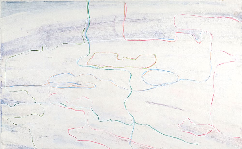 Watercolour painting, acrylic spray paint, coloured pencil, correction fluid